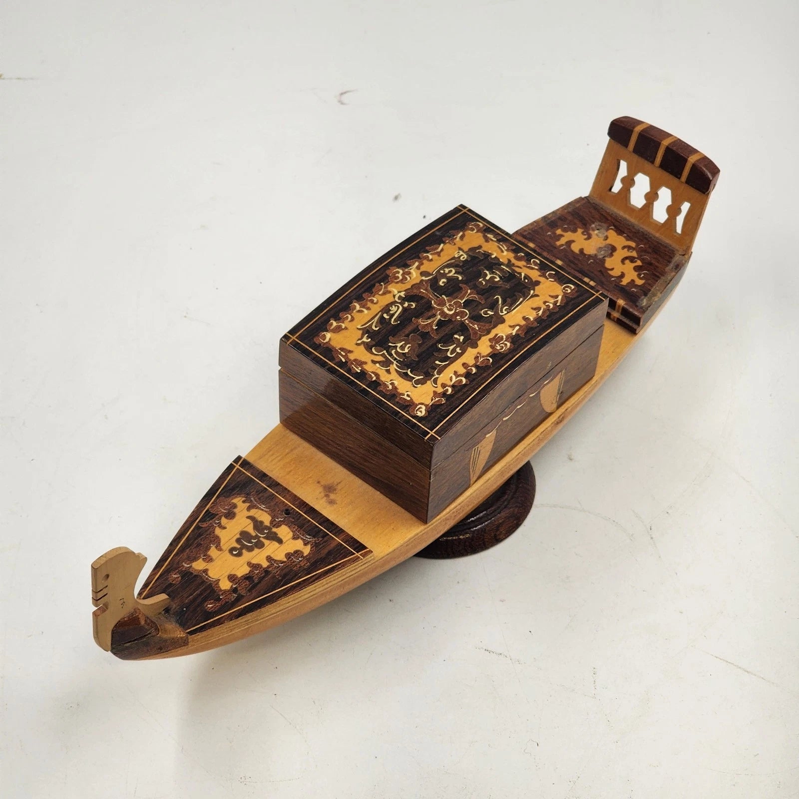 Wood Inlaid Gondola Ship Figurine Marquetry 13" Nautical Switzerland No Music