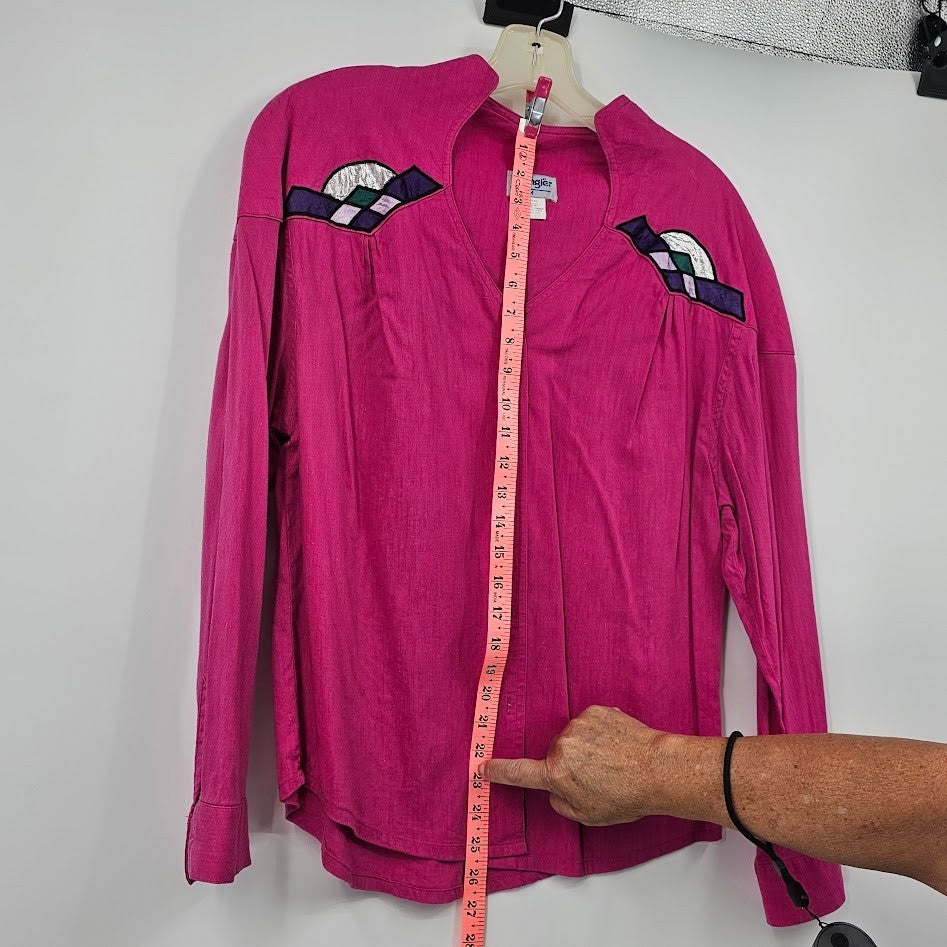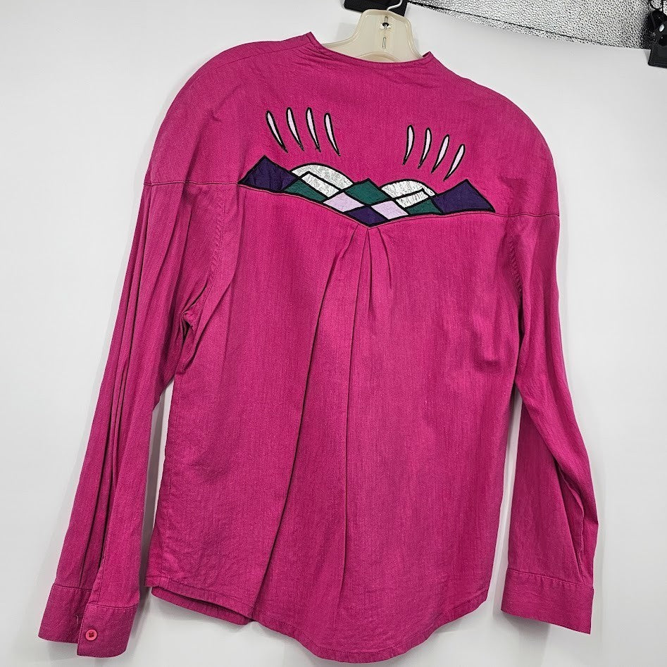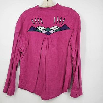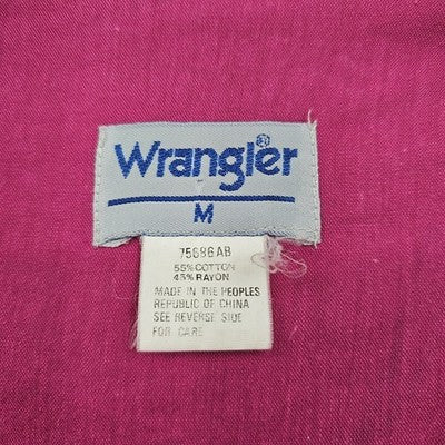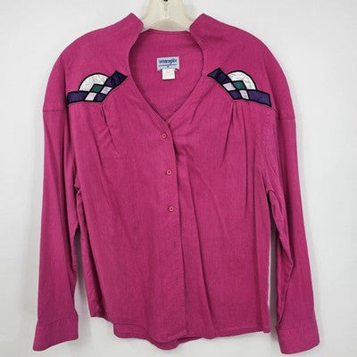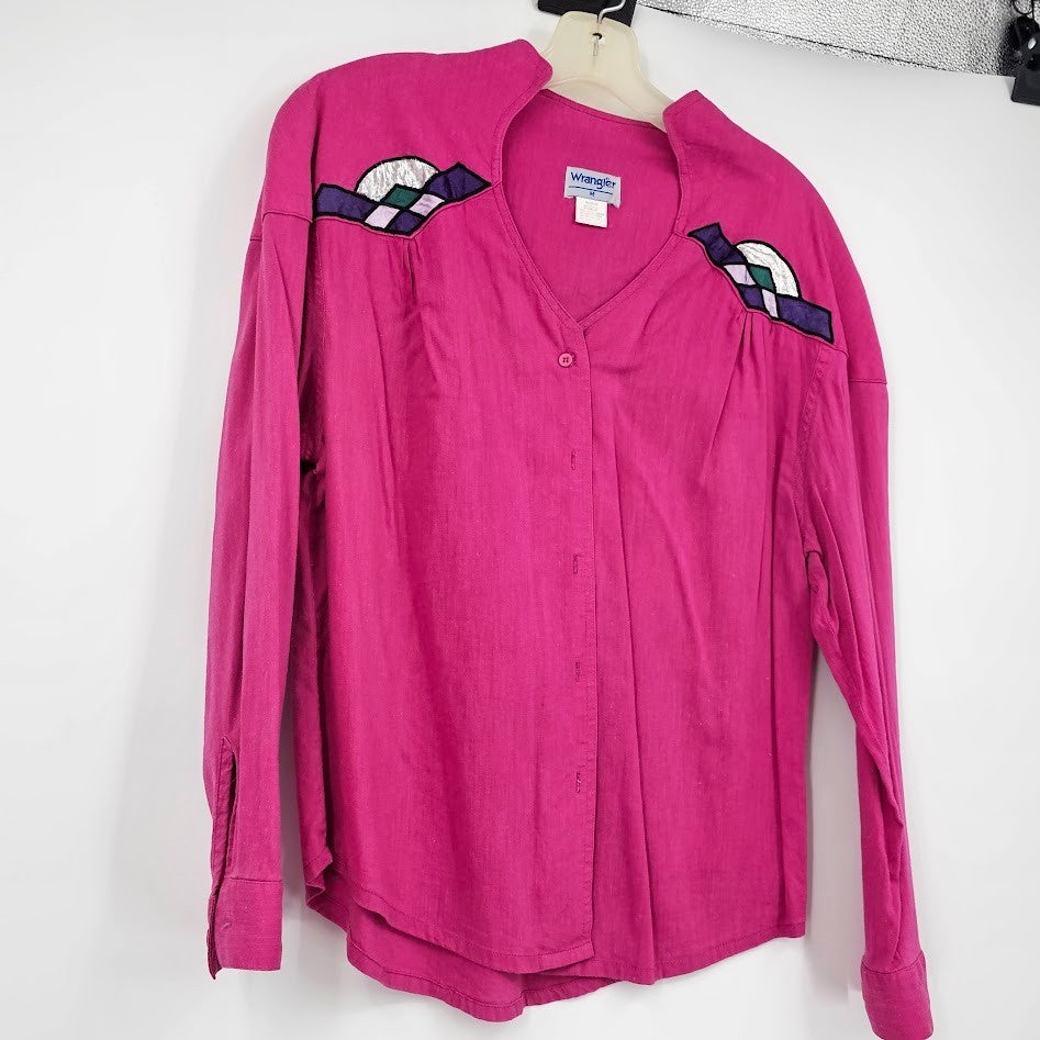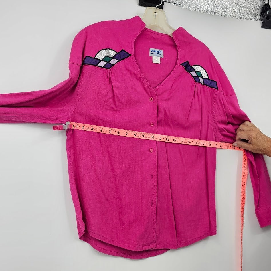 Wrangler Women’s Medium Pink Western Blouse Button Front Applique 90s Cowgirl Rodeo Shirt