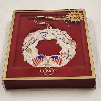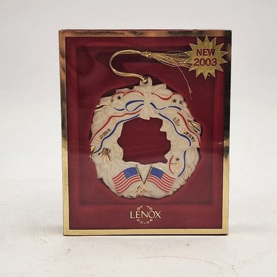 Wreath Christmas Ornament Home of the Brave Lenox USA 2003 w Box China