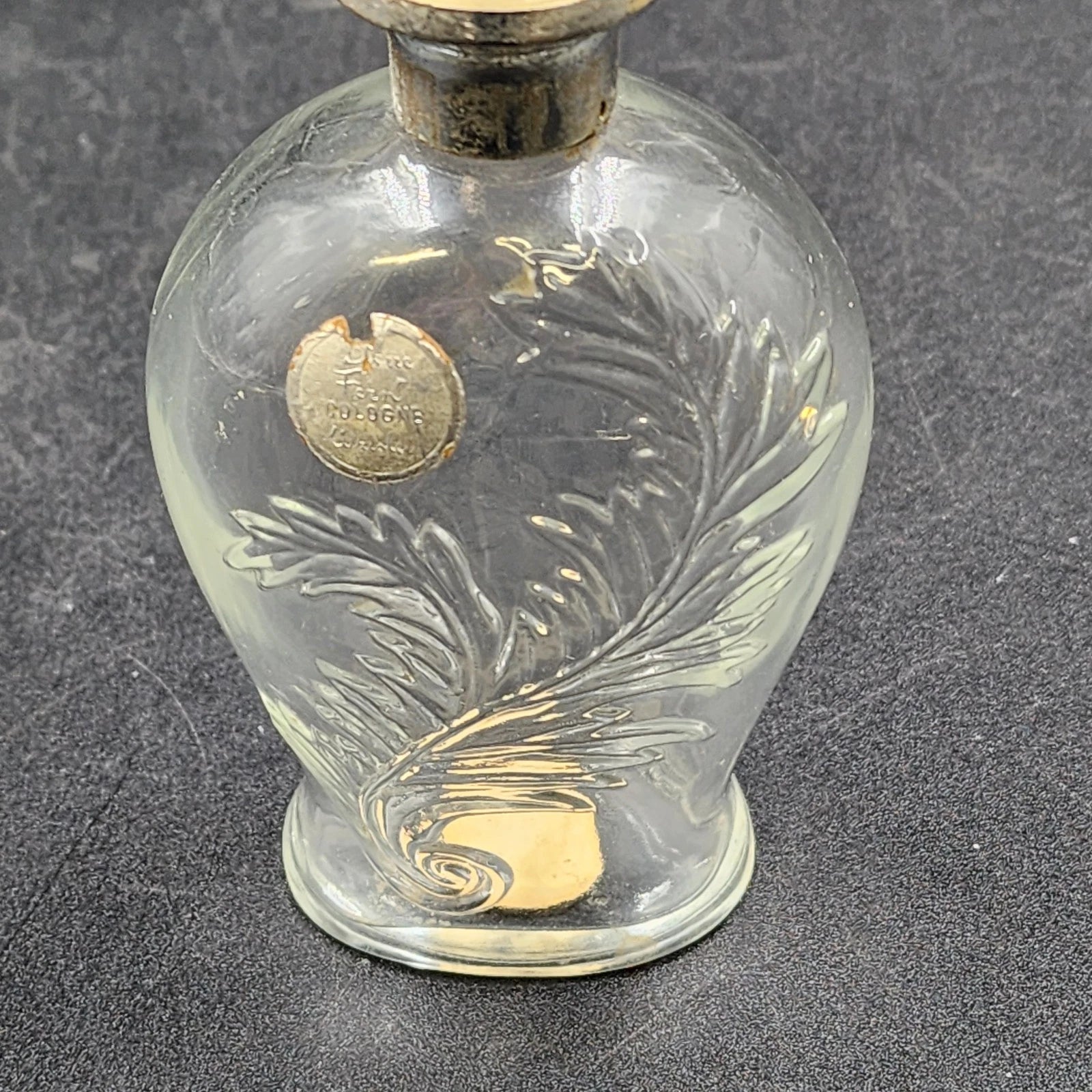 Material: Clear Glass with Embossed Fern Pattern, Metallic Cap (Silver Lid/Tone)