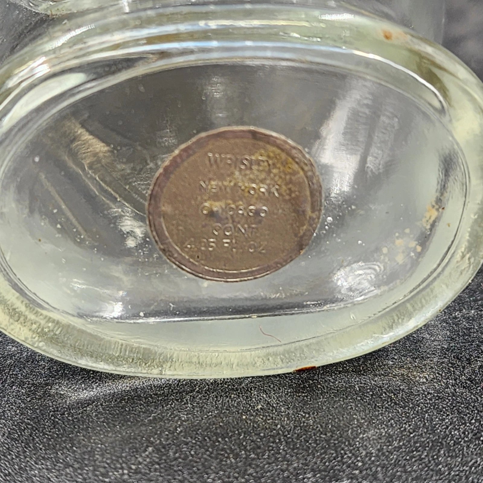 Wrisley Blue Fern Cologne Bottle 4.25 oz Clear Glass Silver Lid Empty 1950 Vtg
