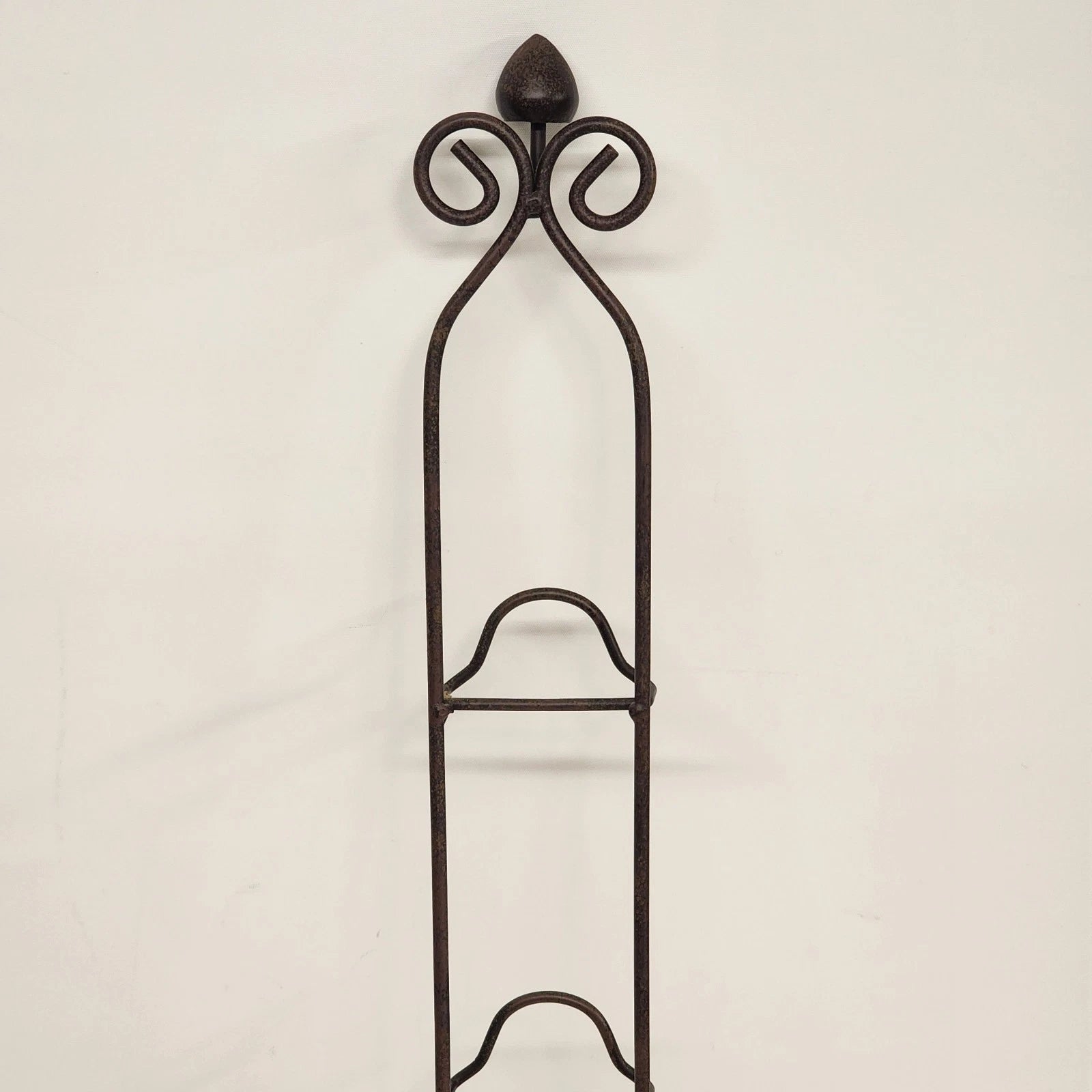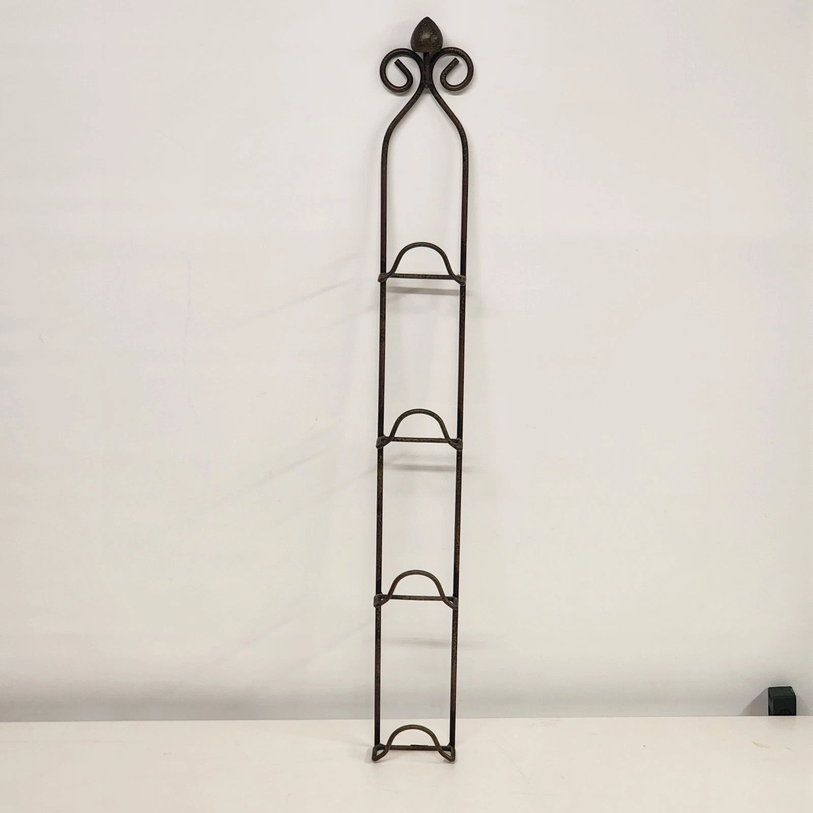 Pre-owned decorative set in good condition. Plates show light wear consistent with display use. No major chips or cracks noted. Wrought iron rack is sturdy and secure. Please review photos for details.