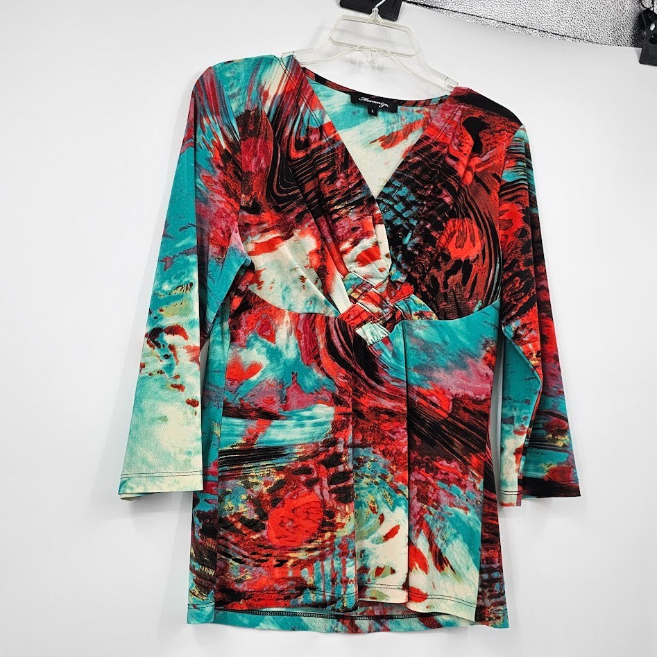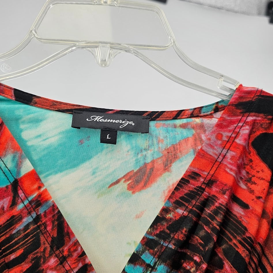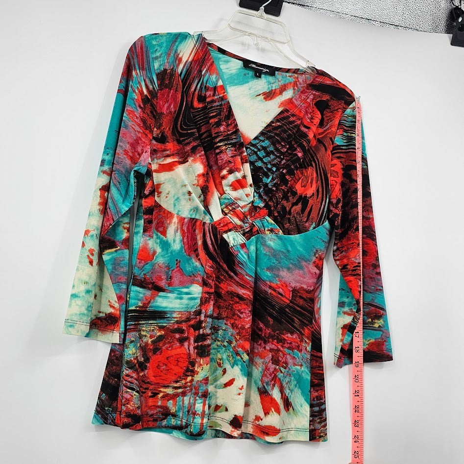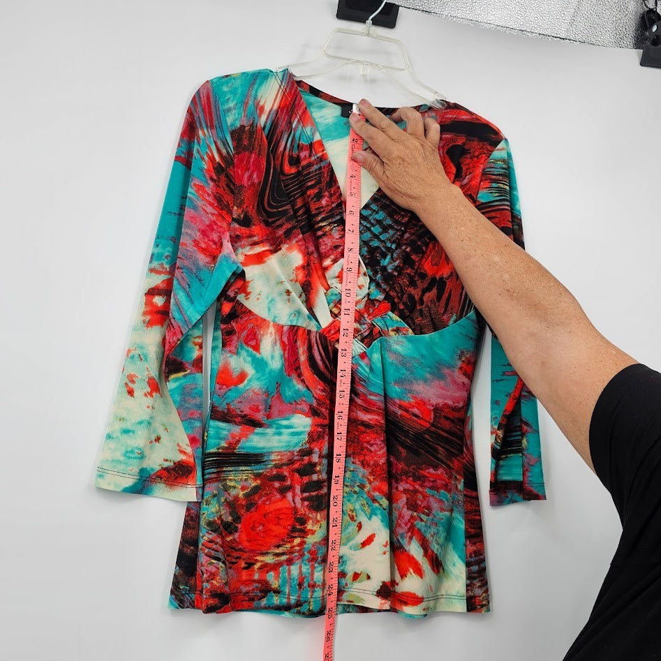 Y2K Mesmerize Retro Blouse Women’s L Multicolor Funky Print V-Neck Festival Top