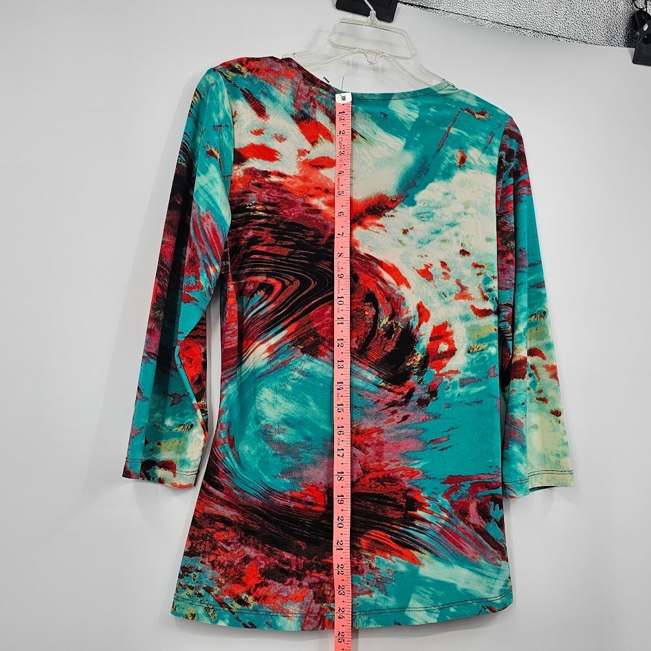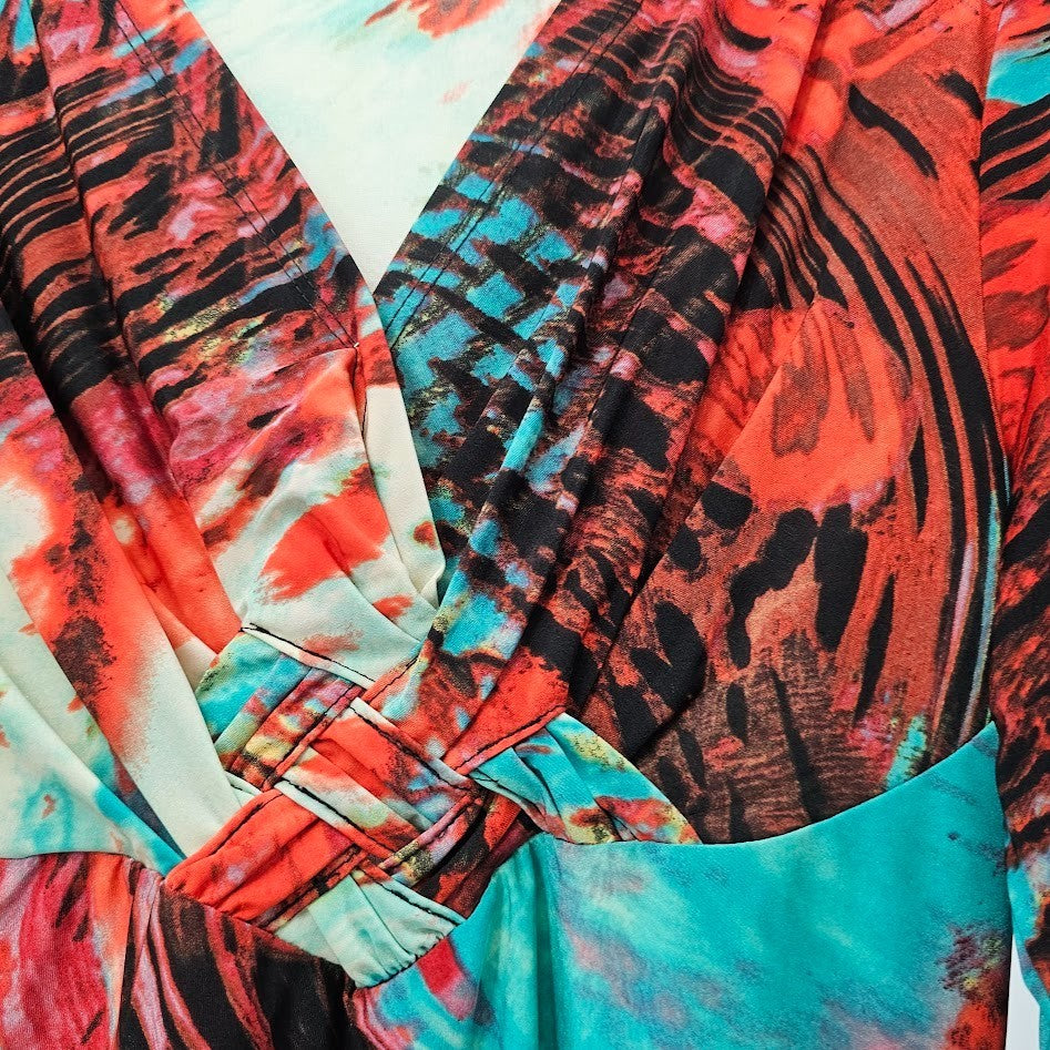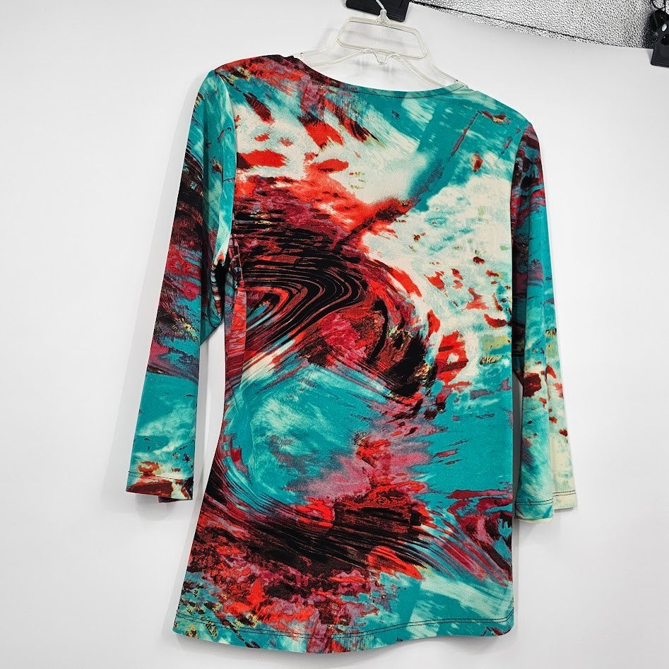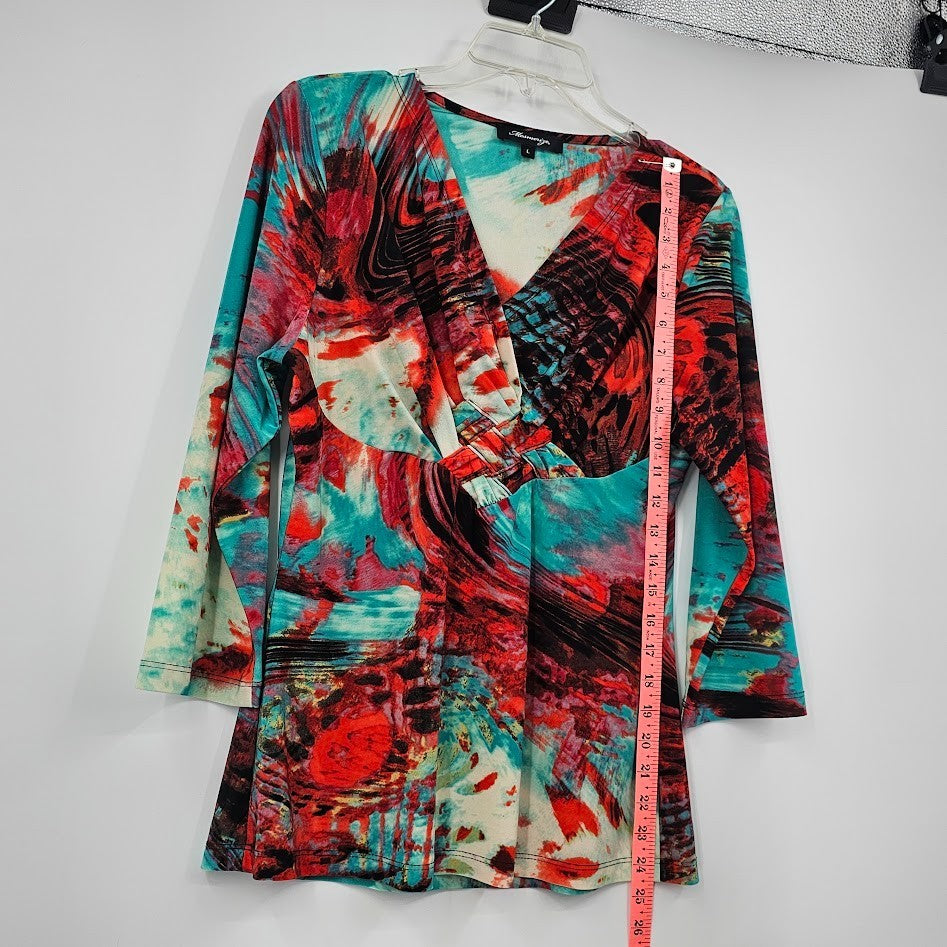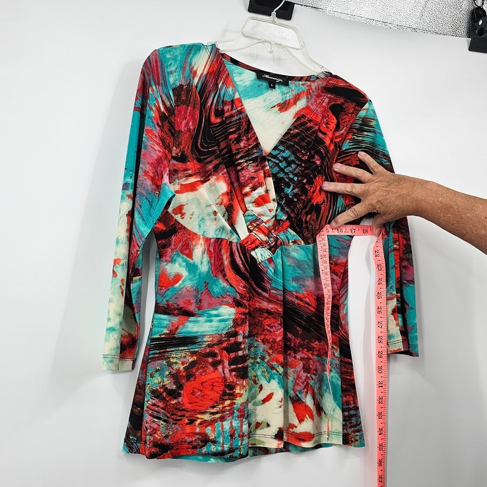 Y2K Mesmerize Retro Blouse Women’s L Multicolor Funky Print V-Neck Festival Top