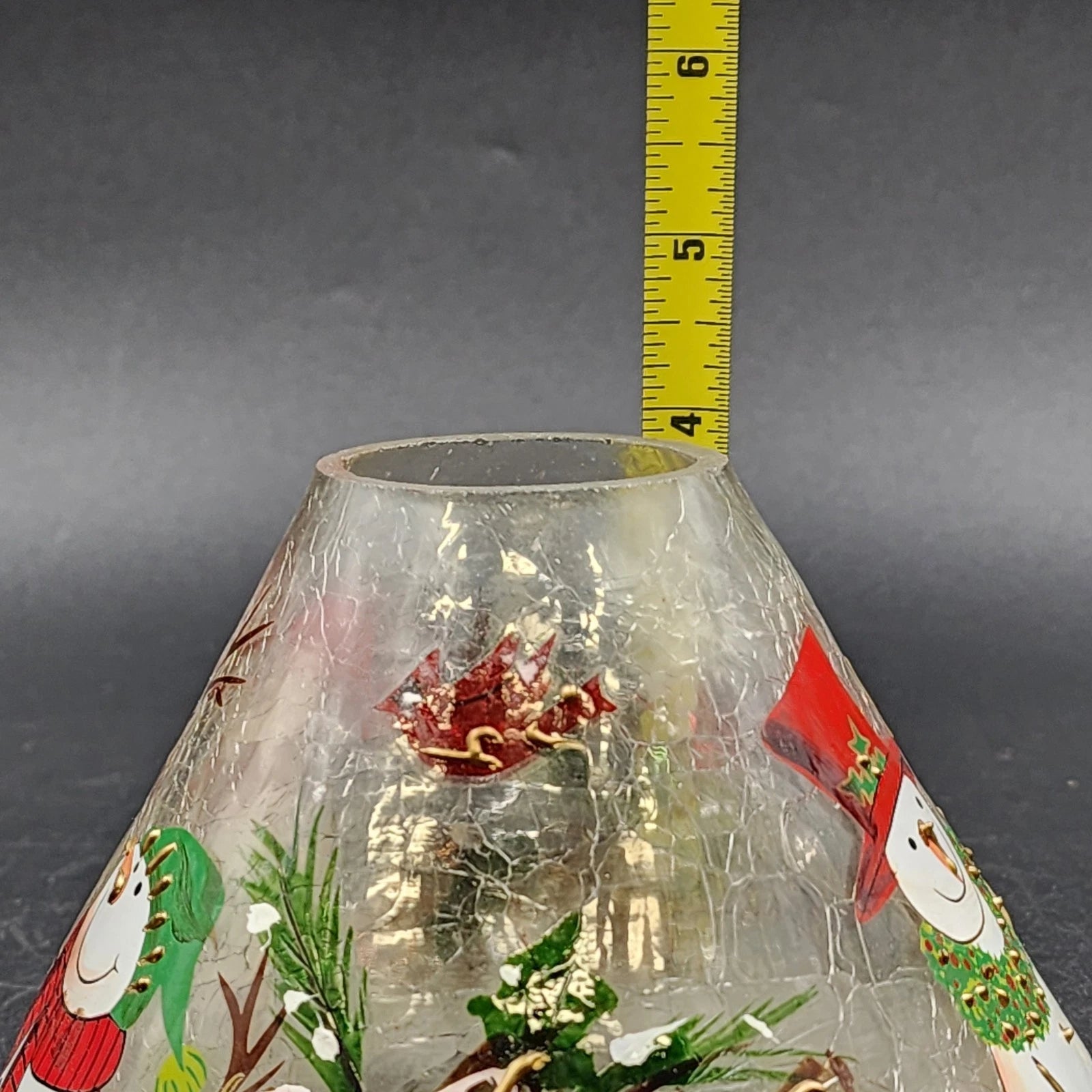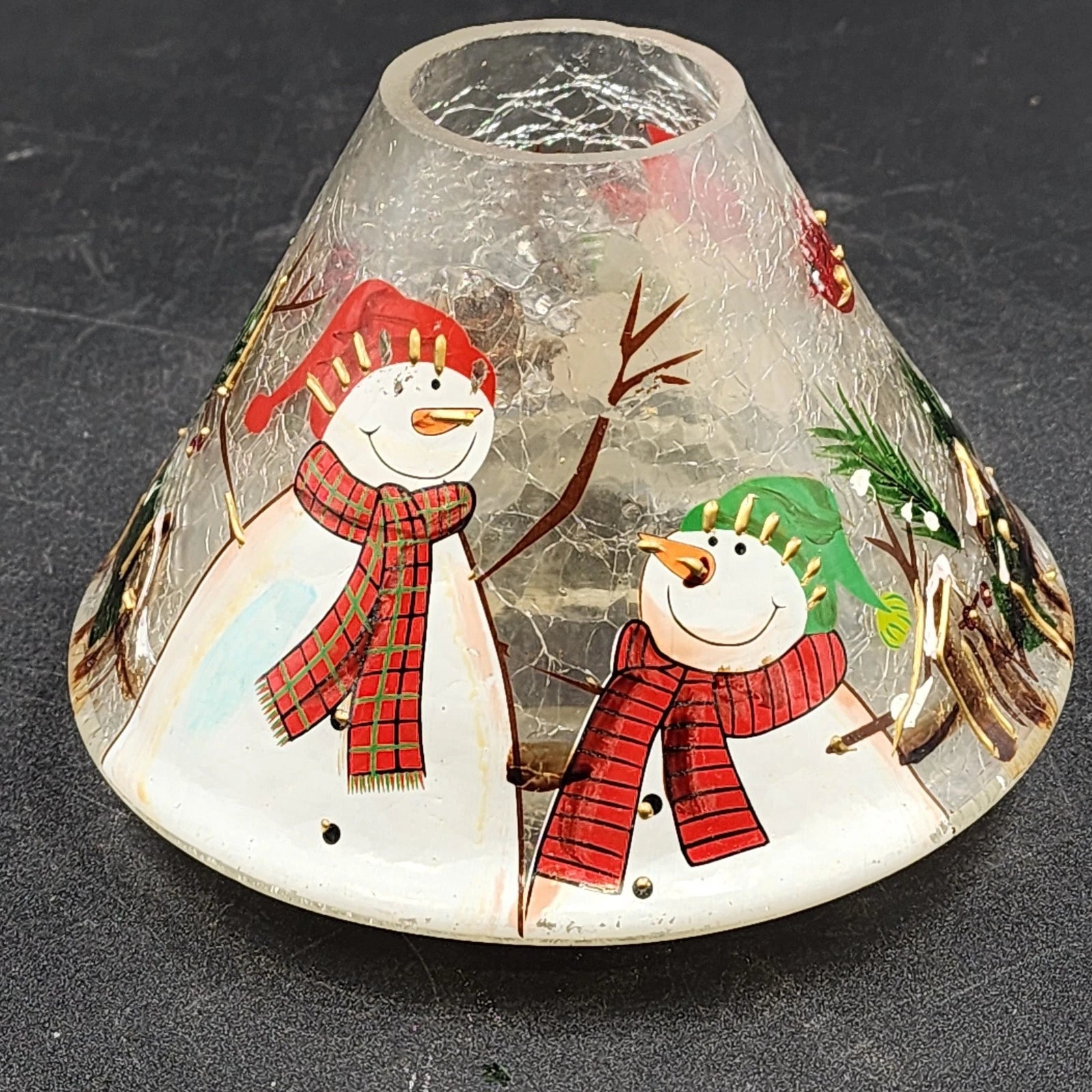 Yankee Candle Large Jar Shade Clear Crackle Glass Snowmen Cardinal Gold Trim