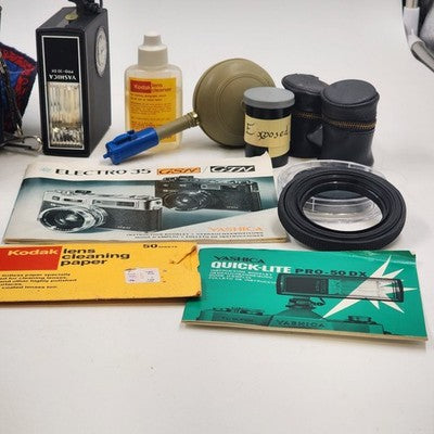 Yashica Electro 35 Film Camera 35mm Case Flash Power Cord Inst Manual Camera Bag