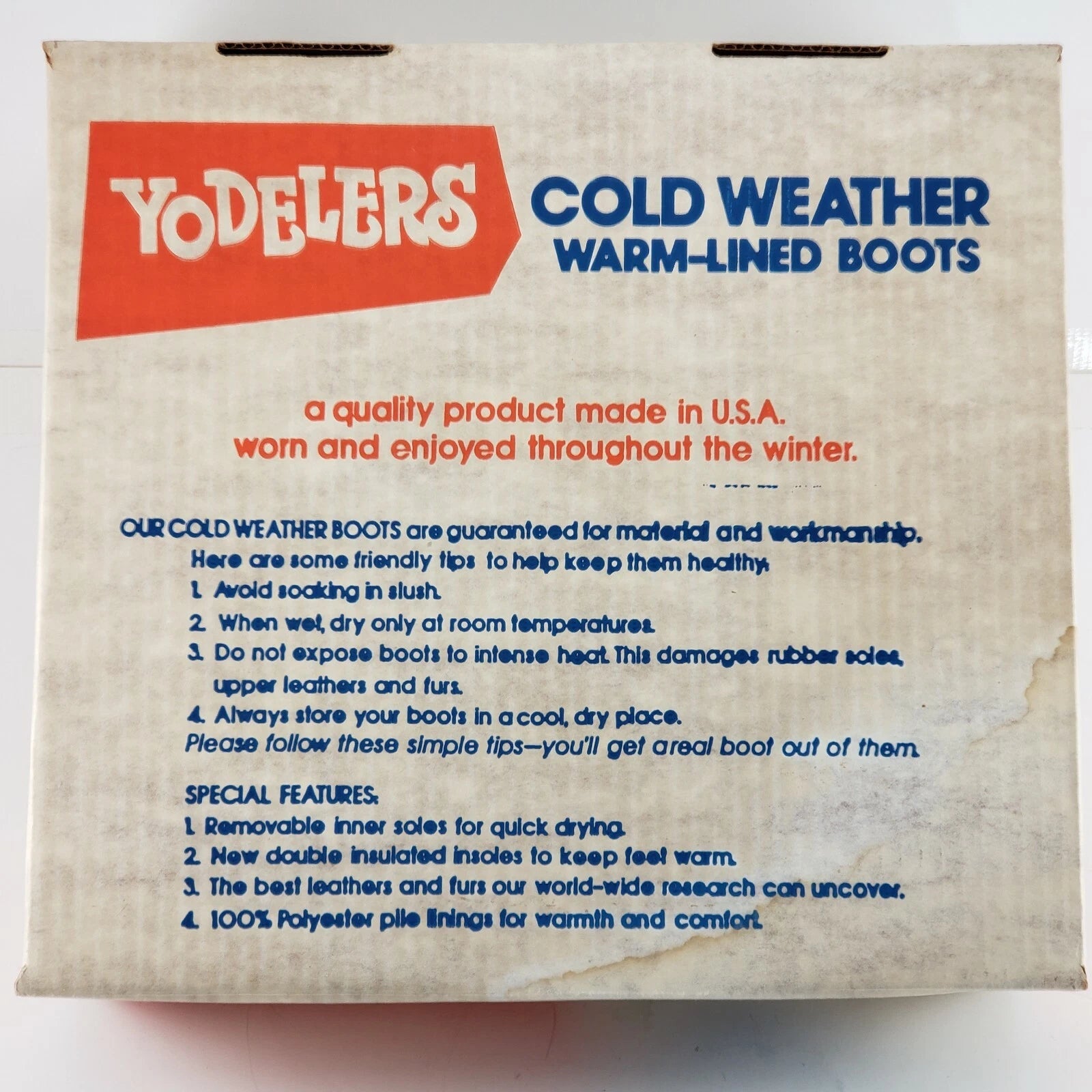 Stylish and cozy vintage Yodelers boots in a beautiful navy blue puff design. These mid-calf boots feature a zip front, nylon outer, and soft faux fur lining for extra warmth. The 2½" wedge heel adds just the right amount of height, while the rubber sole ensures durability and comfort.