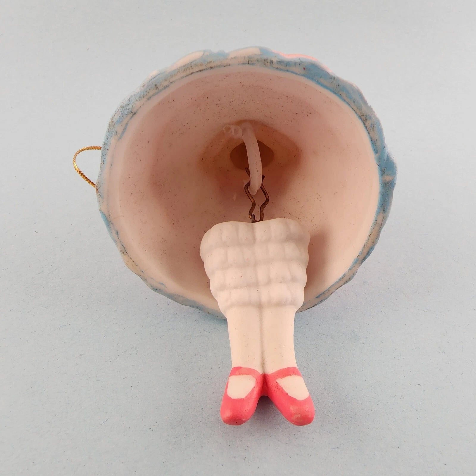 Add a nostalgic charm to your holiday décor with these vintage porcelain bell ornaments featuring young girls with hanging leg chimes. Beautifully detailed and perfect for collectors or vintage Christmas displays.