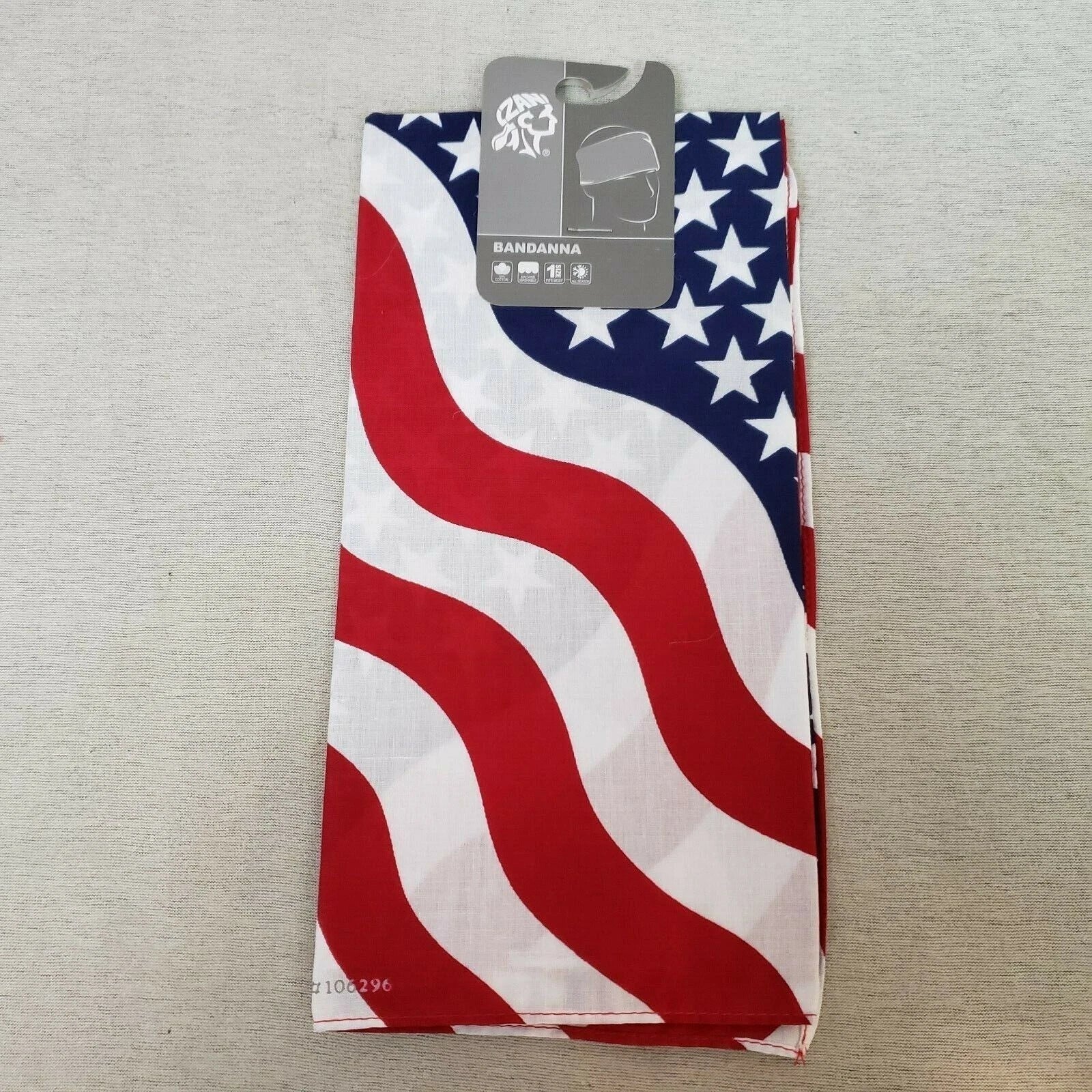 ZANheadgear Bandanna USA Wavy American Flag Cotton 22"x22" One Size NOS