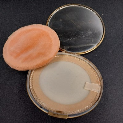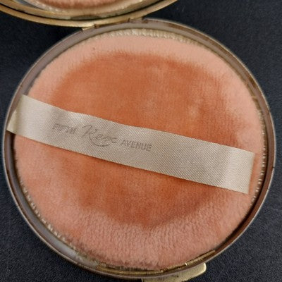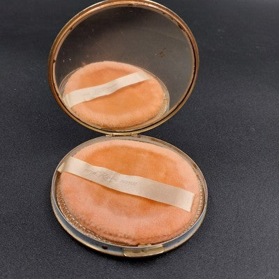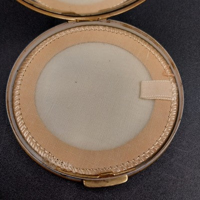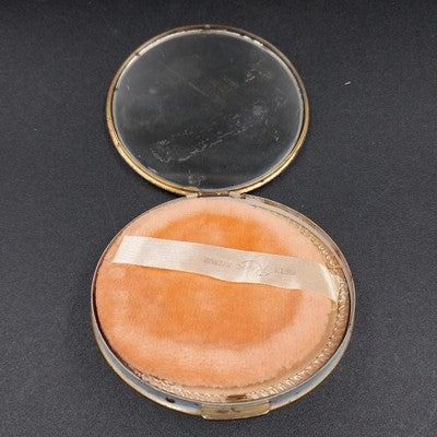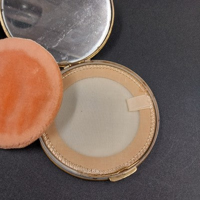 Designed for both beauty and utility, this compact was used to hold face powder and rouge, complete with a mirror inside. These Art Deco compacts are prized by collectors for their exquisite detail and historical charm.